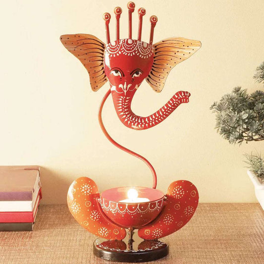 Metal Embossed Ganesha Diya Table Decor