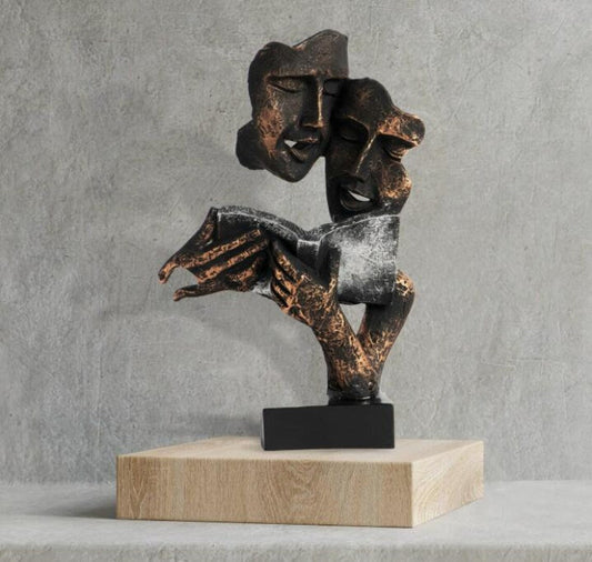 Polyresin Couple Book Face Figurine